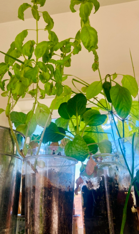 Hopefully, next year I’ll have more impressive photos to share. While my indoor garden wasn’t Pinterest worthy this year, it did produce some tasty little snacks. Buying a lot of pots from the start is expensive, so most of my plants started out in repurposed food packaging. I got some pots for free on FB marketplace by the time they were ready to transfer.